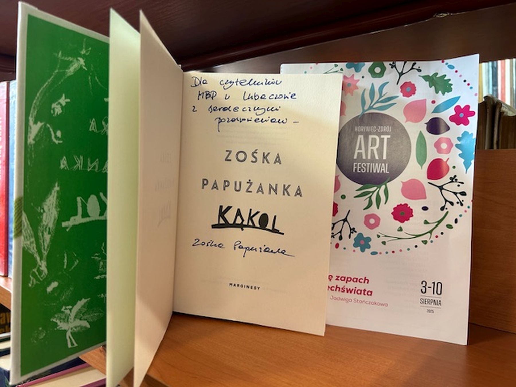 Szczególnym punktem programu było spotkanie z Zośką Papużanką, które odbyło się 8 sierpnia w Gminnej Bibliotece Publicznej w Horyńcu-Zdroju. Rozmowę prowadziła Anna Kłysewicz. Dyskusja koncentrowała się wokół książki „Kąkol” – refleksyjnej opowieści o dojrzewaniu, pamięci i codzienności.