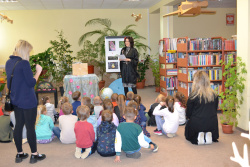 Urzekająca opowieść pt. „Groszki” F. Malnuit wzbudziła ogromne zainteresowanie wśród naszych młodych czytelników. Dzieci chętnie tworzyły ciekawe i zaskakujące opowieści o dalszych losach trzech groszków. Dowiedziały się jakie są etapy wzrostu roślin na przykładzie zielonego groszku, a udział w scence, w której wcieliły się w rolę nasionek, jeszcze bardziej przybliżył im cykl wzrastania roślin. Przedszkolaki poznały nowe słowa tj. kiełkowanie, gleba, strączek, ale też ekologia i recykling, ponieważ tą ciekawą formę czytania połączyliśmy z lekcją ekologii. Okazało się, że zielone tematy nie są obce maluchom. Bardzo nas to cieszy, bo przyszłość środowiska jest w ich rękach.