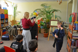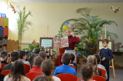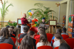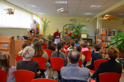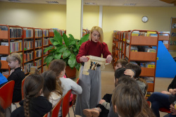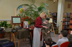 Tematem spotkania była „Historia rozwoju pisma”, którą Pani Bata ciekawie połączyła z rolą czytania książek. Na początku zapoznaliśmy się z historią pisma węzełkowego, klinowego, sumeryjskiego oraz hieroglifów, zobaczyliśmy tabliczki przywiezione z Iraku, które każdy uczestnik mógł sam dotknąć. Nasz gość cały czas podkreślał rolę intelektualnego rozwoju człowieka, bo tylko mądry człowiek potrafi odnaleźć się w każdej sytuacji, bo tylko kraj mający mądrych obywateli potrafi obronić się od wrogów. Nawiązując do historii naszego kraju, do wojen, które niszczyły inteligencję polską, zachęcała młodych ludzi do czytania i do uczenia się, bo tylko dzięki temu będziemy silni, mądrzy i niezależni. Zajęcia te świetnie współgrały z uroczystością wręczenia nagród osobom, które w 2022 roku bardzo dużo czytały. Wzorem lat ubiegłych nagrodziliśmy je w trzech kategoriach wiekowych: